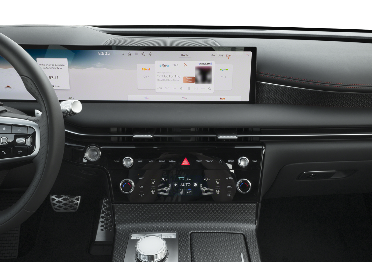 - Radio: AM/FM/HD/SiriusXM Bang & Olufsen Audio Sys -inc: 1400 watts, hi-resolution audio, 18 speakers, 14 channel digital external amplifier, 27" high-definition OLED display and navigation system, SiriusXM Radio w/90-day trial subscription (not available in AK or HI), wireless Apple CarPlay, wireless Android Auto, fingerprint authentication system, Genesis Connected Services, USB, Bluetooth® hands-free phone system w/audio streaming and Wi-Fi hotspot